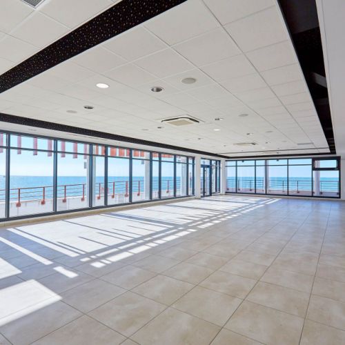 > salle du Pavillon de l'Aunis, au pied de la résidence d'hébergement avec vue mer