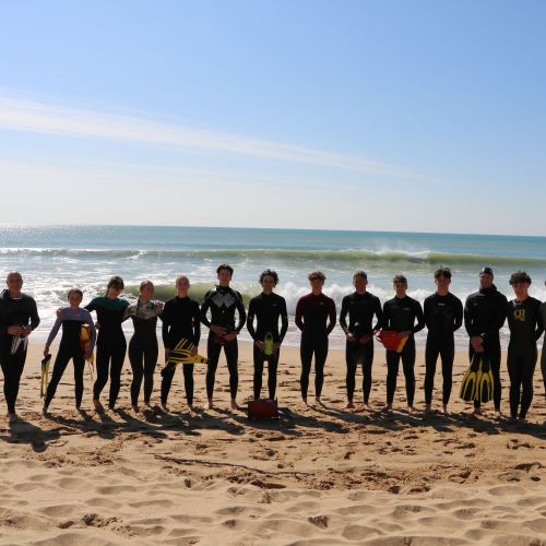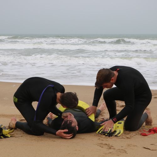Le SSA prépare aux techniques de sauvetage en mer (bouée tube, filin, rescue board, scooter des mers, quad...) Ce stage sportif permet également de mieux appréhender le littoral et ses spécificités (courants, marées, réglementation des plages...)